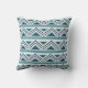 Aqua and Navy Modern Aztec Pattern Outdoor Pillow