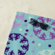 Look closely at this geometric pattern and you'll see that it features illustrations of synchronized swimmers in formation in shads of deep purple, medium purple. lavender and pale green set against an aqua blue or light teal background with polka dots accents. This beach towel is ready to be personalized with a name or other message in aqua blue against a dark purple background. Makes a great gift for synchronized swimmers and synchro coaches.