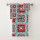 Aqua and Red Tile Pattern Bath Towel Set