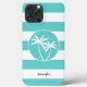 Aqua and White Stripes and Palm Trees with Name Case-Mate iPhone Case