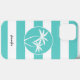 A cool tropical design in aqua and white rugby stripes with a simple palm trees logo gives island vibes to this personalized phone case. Personalize with your name, monogram or other desired text. If you wish to have the case without text, choose personalize and delete the sample name shown in the design template.