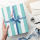 Aqua and White XL Stripe Pattern H Wrapping Paper