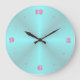 Un design simpliste en aqua/vert avec chiffres romains roses.Idéal pour une chambre pour filles, ou comme horloge de cuisine. Disponible en forme ronde et carré.