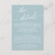 This aqua beach coordinate wedding details enclosure card is perfect for a tropical destination wedding. The simple and modern design features stunning turquoise, teal and light blue reminiscent of the sea. It's paired with gorgeous elegant calligraphy.