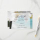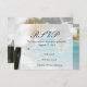 Refreshing and classy design features an aqua teal blue ocean shore scene with white waves crashing on the coast. Fresh clear blue water and white sand with blue sky and white puffy clouds. In the foreground is a beautiful white orchid flower close-up in high quality. This serene and tranquil zen image is perfect for a beach wedding, or spa resort vacation travel themed special event or business occasion. Relax while getting a massage, spa manicure or pedicure at the salon. Enjoy relaxation and peacefulness by the beach and ocean shores. All Designs Copyright © 2012 www.CustomInvitesOnline.com
