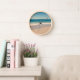 This sample photo is a vintage tint photo of a beach scene along Monterrey Bay, California on a wall clock without numbers.