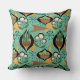 Aqua, Black, Gold Atomic Plants | Mid-Century Throw Pillow