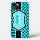 Personalized modern aqua blue, black, and white polka dots with stripes pattern Case-Mate Barely There™ iPad Air case.