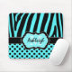 Aqua, Black, White Zebra Stripe & Dots Mousepad