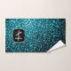 Personnalisez avec votre nom et votre initiale - unique faux décor maison serviette de toilette pour elle. De belles parties scintillant brillantes d'un bleu clair brillant et girly brillent. Photo de cyan bleu étincelle pas de parties scintillant réelle !