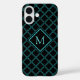 Aqua Blue and Black Diamond Pattern Monogram Case-Mate iPhone Case