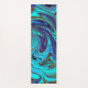 Aqua Blue and Black Groovy Abstract Retro Art Yoga Mat