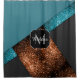 Decorate your bathroom in style with sparkly shower curtain. Personalize with your initial and name. Aqua blue and bronze sparkles modern colour block. Geometric design colour block art of aquatic blue turquoise and orange brown sparkles. We use Photo of sparkles not actual glitter!