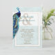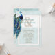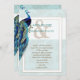 Elegant Aqua Love Bird Peacock Wedding Invitations. Chinoiserie Inspired, Turquoise, Teal, Green and Navy Blue Tropical Destination Wedding featuring subtle palm tree pattern, Verdigris Teal Blue Turkish Sea Ocean Blue Peacock Design. Perfect for the roaring 20s Gatsby Lovebird Fairytale Island Wedding Themes.