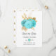 Aqua and faux foil gold floral wedding save the date customizable to your event specifics.