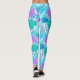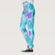 Aqua Blue and Pink Tropical Leaf Patterned Leggings