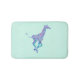 A baby giraffe gallops across this bath mat in shades of aqua, blue and purple.