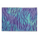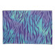 Navy zebra stripes on a brilliant, deep, aqua blue and purple coloured background.