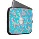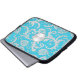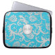 This bright aqua blue and silver floral damask laptop sleeve has FAUX silver medallion with a text box for you to add your own name, monogram, or other text. If you need any help customizing, please email niteowlstudio@gmail.com.