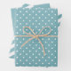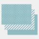A gorgeous set of three wrapping sheets in aqua blue and white. One design is pure aqua, another has small white polka dots and the other has aqua and white stripes. Perfect for gift giving throughout the year including birthdays, anniversaries, graduations, bridal or baby showers and even holiday gifts.