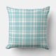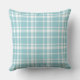 Aqua Blue and White Tartan Plaid Pattern Throw Pillow