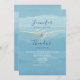 Aqua Blue Beach Wedding Invitation with Gold Heart