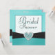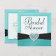 Aqua Blue & Black Glitter Heart Wedding Shower Invitation