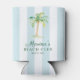 Aqua Blue Cabana Stripes Palm Beach Club Birthday Can Cooler