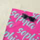 Beach towel featuring a custom name in an aqua blue script font on a hot pink background. Bold and colourful design.