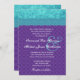 This design with its bright aqua blue grunge damask and purple background makes an elegant wedding invitation.