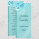 © Sunny Mars Designs - Floral Hibiscus : Dark Aqua Blue Wedding Program Rack Cards - Stylish, moderne et entièrement personnalisable programme de mariage personnalisé modèle avec une illustration d'un joli, tendance, chic aqua bleu tourbillonnant hibiscus design floral décoration contre un arrière - plan turquoise.