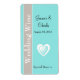 Étiquettes de mini bouteille de vin raffiné dans un bleu aqua, avec une bande taupe courant sur le côté gauche de la étiquette. Un coeur blanc décore le côté bleu, avec du texte noir personnalisé au-dessus et au-dessous du coeur. Texte blanc lecture Mariage Le vin descend verticalement la bande taupe. Tout le texte est prêt à être personnalisé pour votre jour de mariage. Idéal pour les bouteilles individuelles de vin ou de champagne en guise de faveurs pour les clients mariages. Parfait dans chaque cadre pour le toast au champagne.