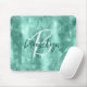 Aqua Blue Geometric Brushed Metal Script Monogram Mouse Pad