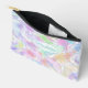 This toiletry bag, travel accessories, or make-up essentials pouch design features a stunning combination of bright and light fuchsia pink, pastel violet, lavender, purple, aqua turquoise blue, and lime green coloured retro chic abstract pattern design. The variety of this colour combo and the wavy swirl shapes create a dynamic and rhythmic effect. The pattern is both ornate and elegant, with a touch of funkiness and hipster flair. There is also room to customize or personalize with a monogram or initial of your choice. Whether looking for a chic and modern style or a vintage and retro trend vibe, this pattern will suit your taste and personality.
