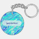 Aqua Blue Marble Texture Abstract Liquid Pattern Keychain