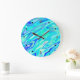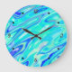 Aqua Blue Marble Texture Abstract Liquid Pattern Large Clock