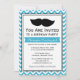 Aqua Blue Moustache Chevron Birthday Party Invitation