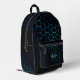 Aqua blue neon honeycomb geometry Monogram Black Printed Backpack.