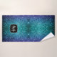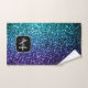 Personalize with your initial and name - unique faux sparkly homedecor bathroom towel set for her. Beautiful girly glamourous dark and light blue shiny glitters sparkles aqua purple ombre. Photo of cyan and dark blue sparkles not actual glitter!