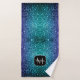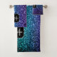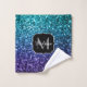 Aqua blue Ombre faux glitter sparkles Monogram Bath Towel Set