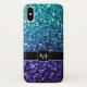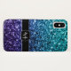 Personalize Sparkly iPhone case with your initial and name. Beautiful girly glamourous dark and light blue shiny glitters sparkles. Photo of cyan and dark blue sparkles not actual glitter!