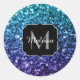 Aqua blue Ombre faux glitter sparkles Monogram Classic Round Sticker