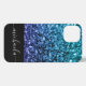 Aqua blue Ombre faux glitter sparkles Monogram iPhone Case