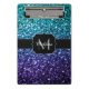 Aqua blue Ombre faux glitter sparkles Monogram Mini Clipboard