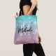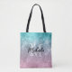 Aqua blue Pink ombre sea galaxy abstract Monogram Tote Bag