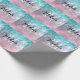 Aqua blue Pink ombre sea galaxy abstract Monogram Wrapping Paper