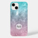 Aqua blue Pink sea galaxy abstract Monogram Case-Mate iPhone Case. Personalize electronics accessory for ladies with her initial and name. Sea pink viridian green ombre abstract galaxy.