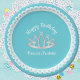 Aqua Blue Princess Tiara Birthday Paper Plate