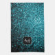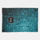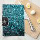 Aqua blue shiny faux glitter sparkles Monogram Kitchen Towel