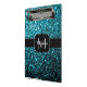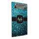 Aqua blue shiny faux glitter sparkles Monogram Mini Clipboard